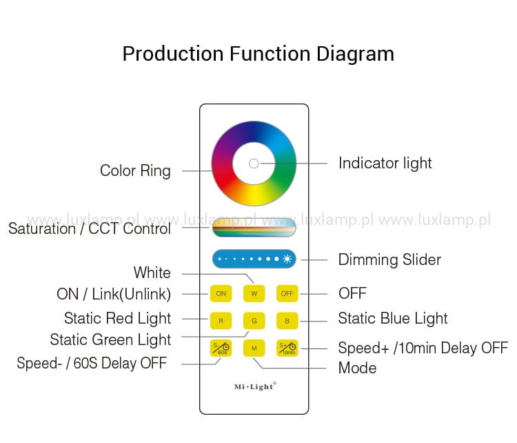 - ustawianie dowolnego koloru RGB, również czystego białego