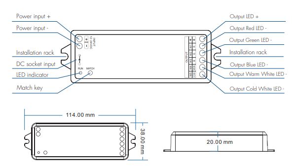Sterownik LED RGB+CCT 4-strefowy 5x3A V5-M